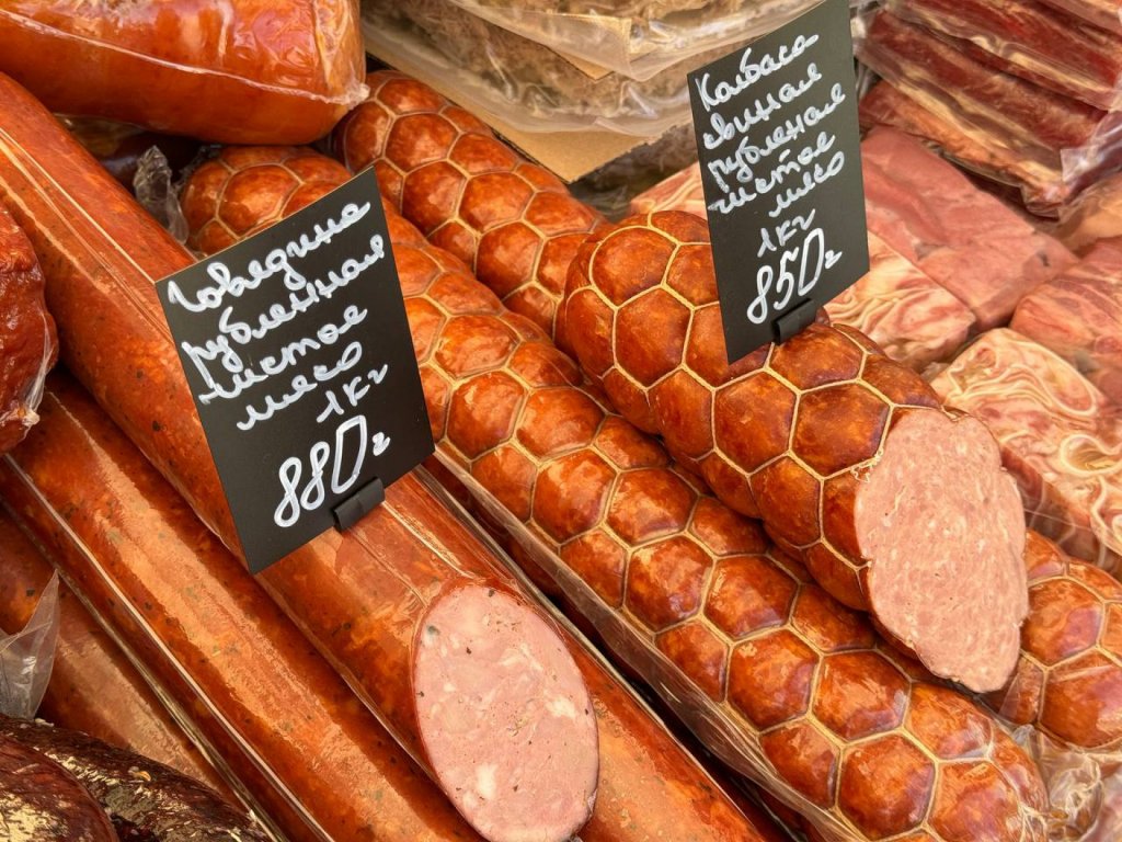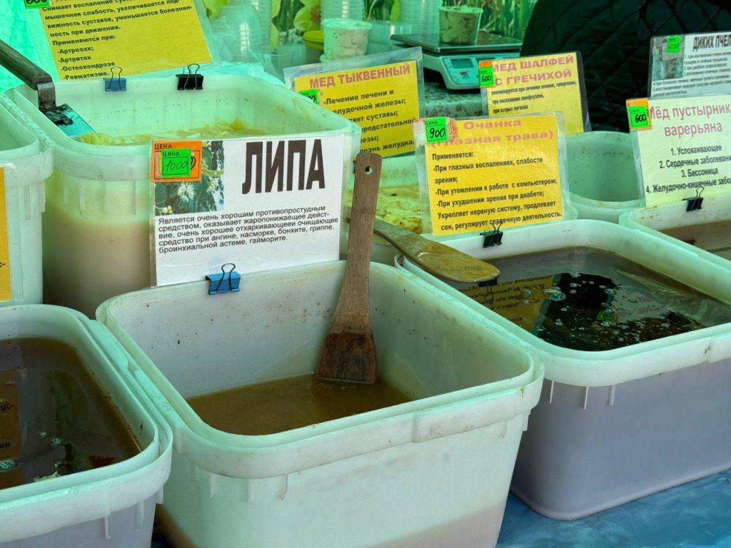 Мы привезли вам очень много вкусного, душистого меда, привезли рыбу камчатки, очень вкусные белорусские колбасы, сыры, сало, еще привезли много одежды, обуви, шапки, приходите к нам на ярмарку за покупками, ждем вас.