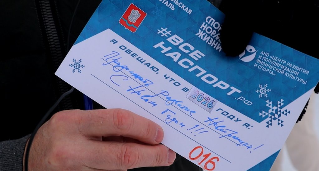 В первый день Нового года в Новотроицке состоялся ставший уже традиционным новогодний флешмоб «Забег желаний». Каждый, кто пришёл сегодня в парк металлургов в это снежное утро, получил стартовый номер, где написал свою цель или обещание на 2026 год. Иван Павлов – постоянный участник этого мероприятия. В этом году он дал себе обещание написать книгу про шахматы.