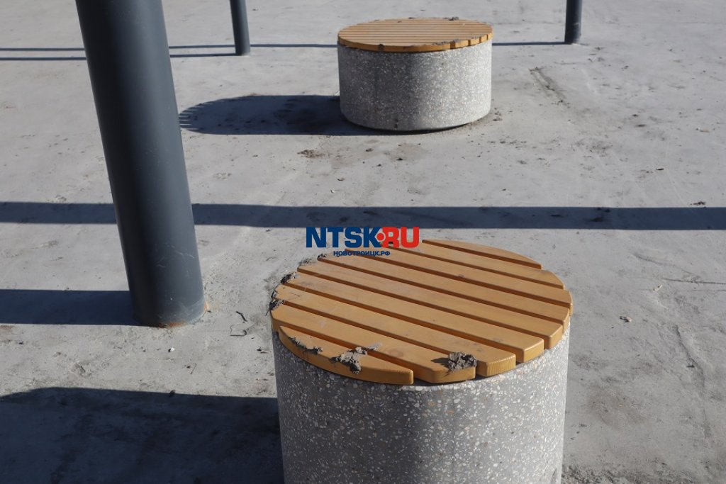 Круглые лавочки в районе перголы на площади перед мэрией используют для очистки обуви от грязи