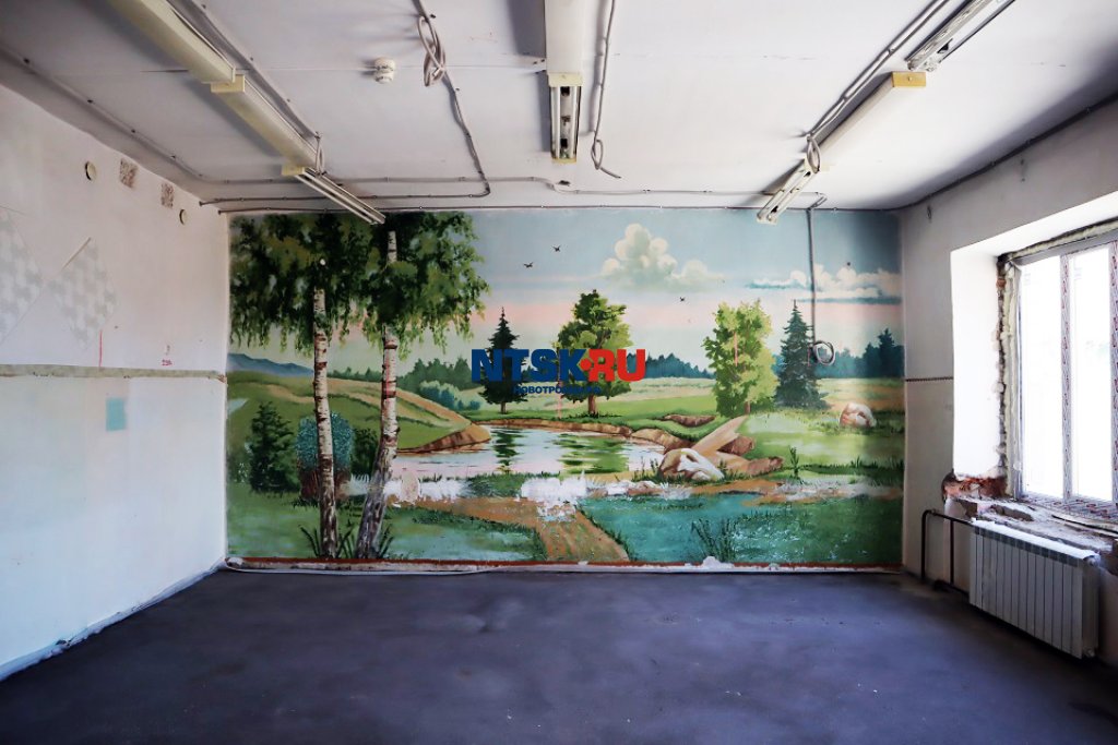 Картины, нарисованные на стенах здания столовой школы № 10, закроют специальным отделочным материалом